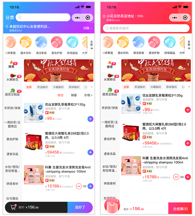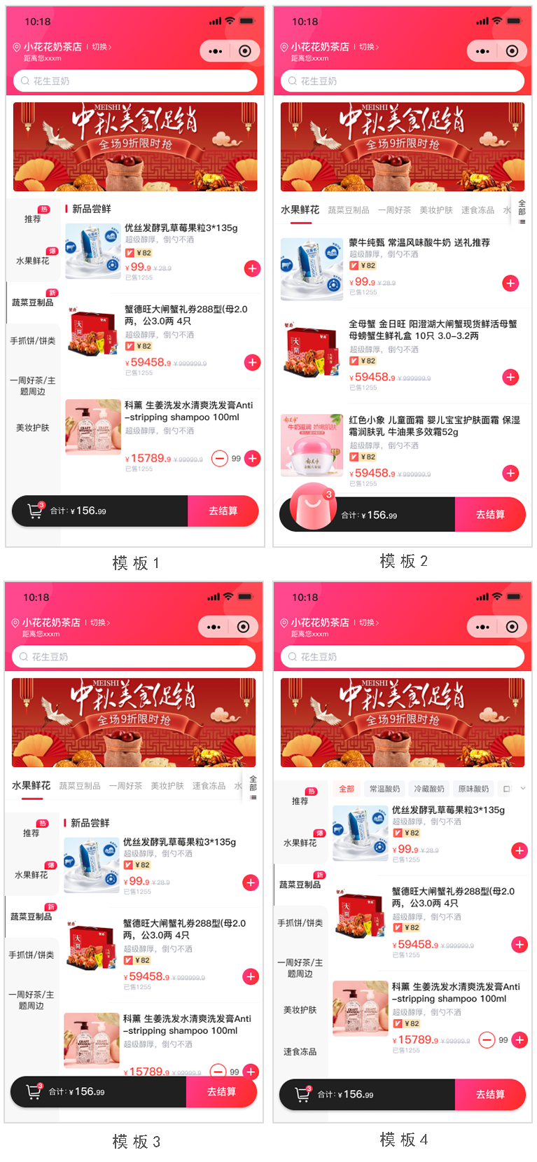 02 / 新增三级分类模板(模板5),并且可自定义加购按钮颜色。