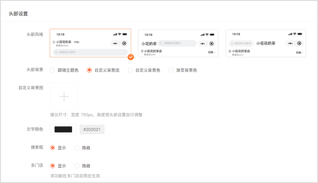 05 / 可自定义头部背景图或背景色,支持设置渐变背景色。