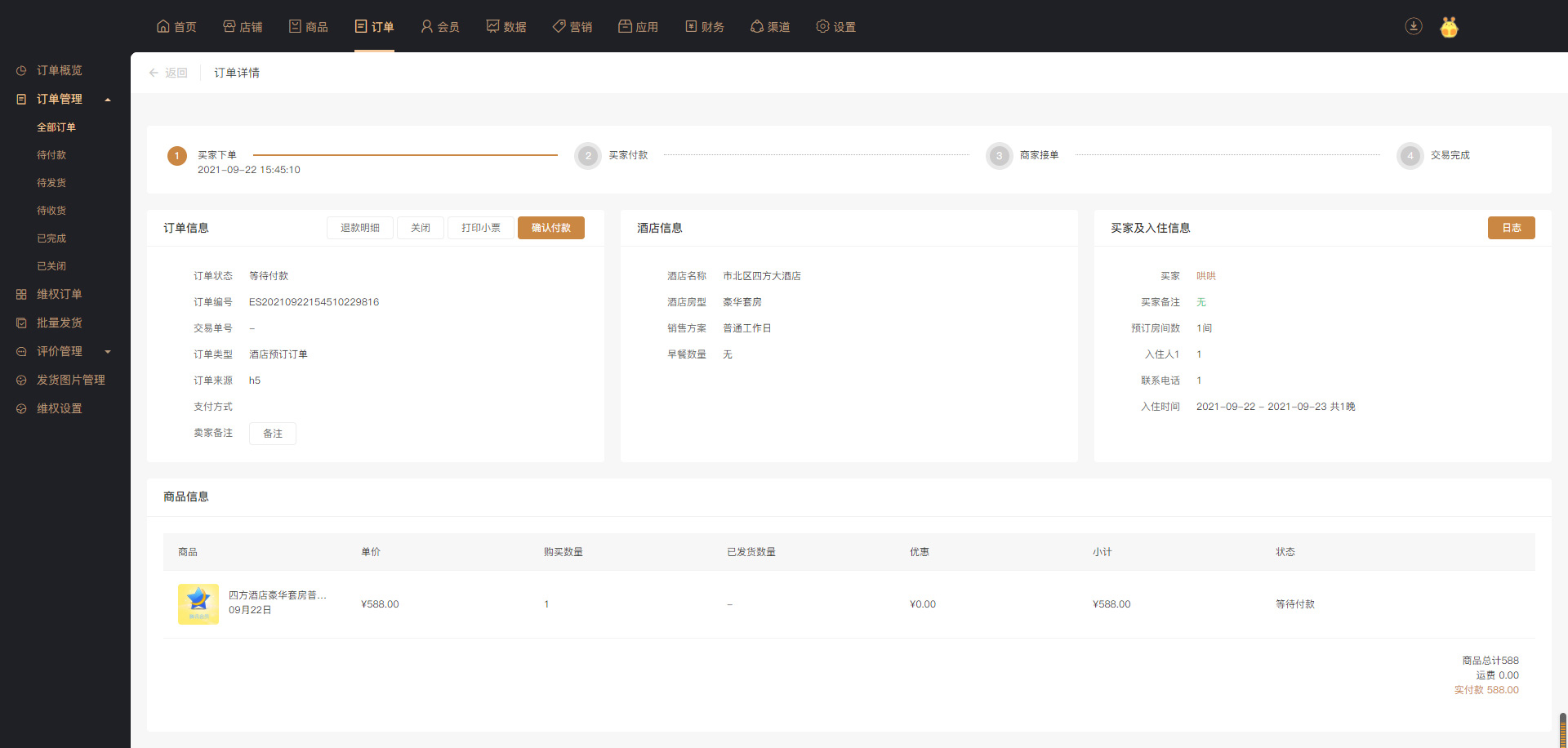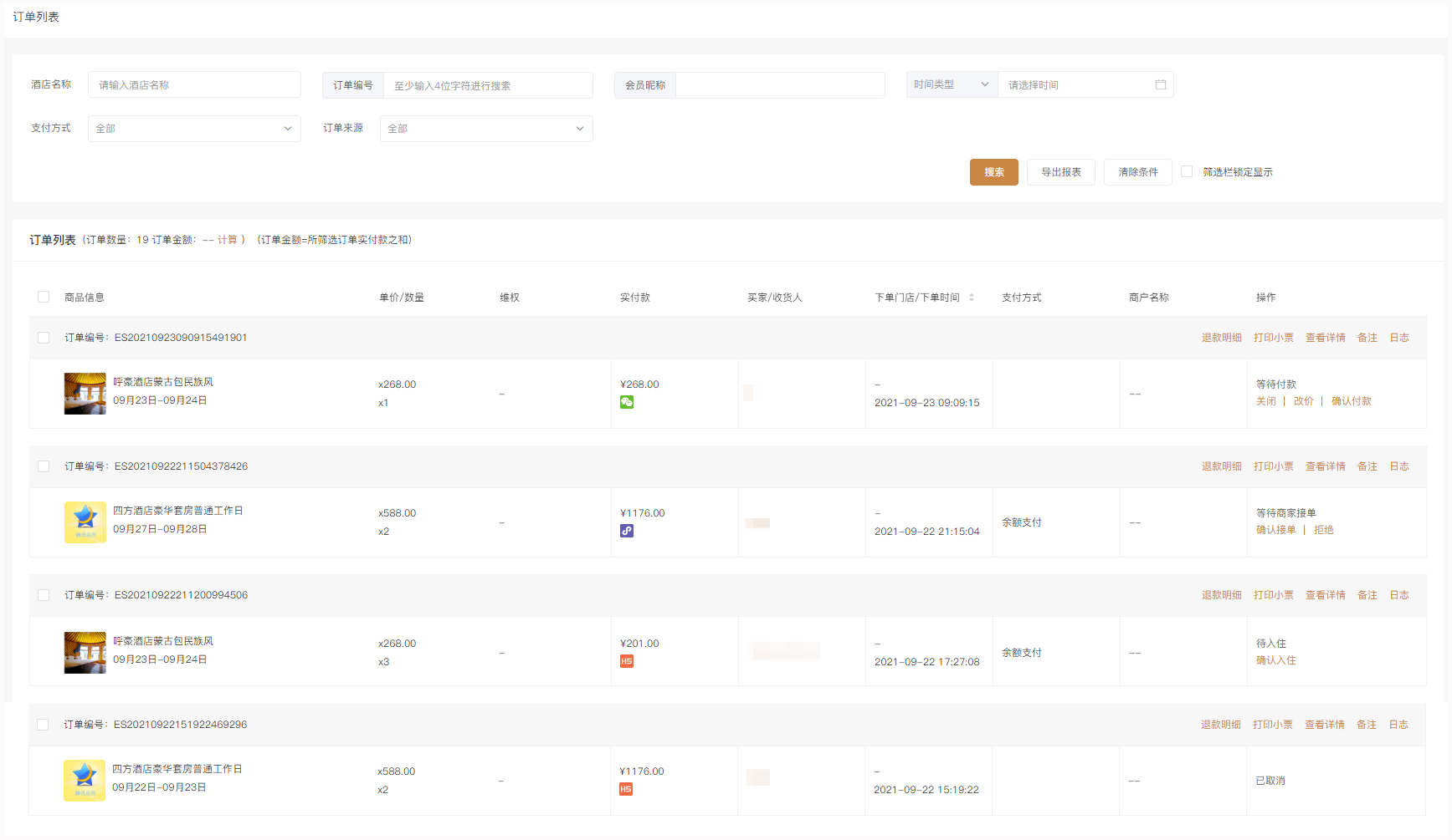 路径:业务端-应用-酒店预订-酒店订单