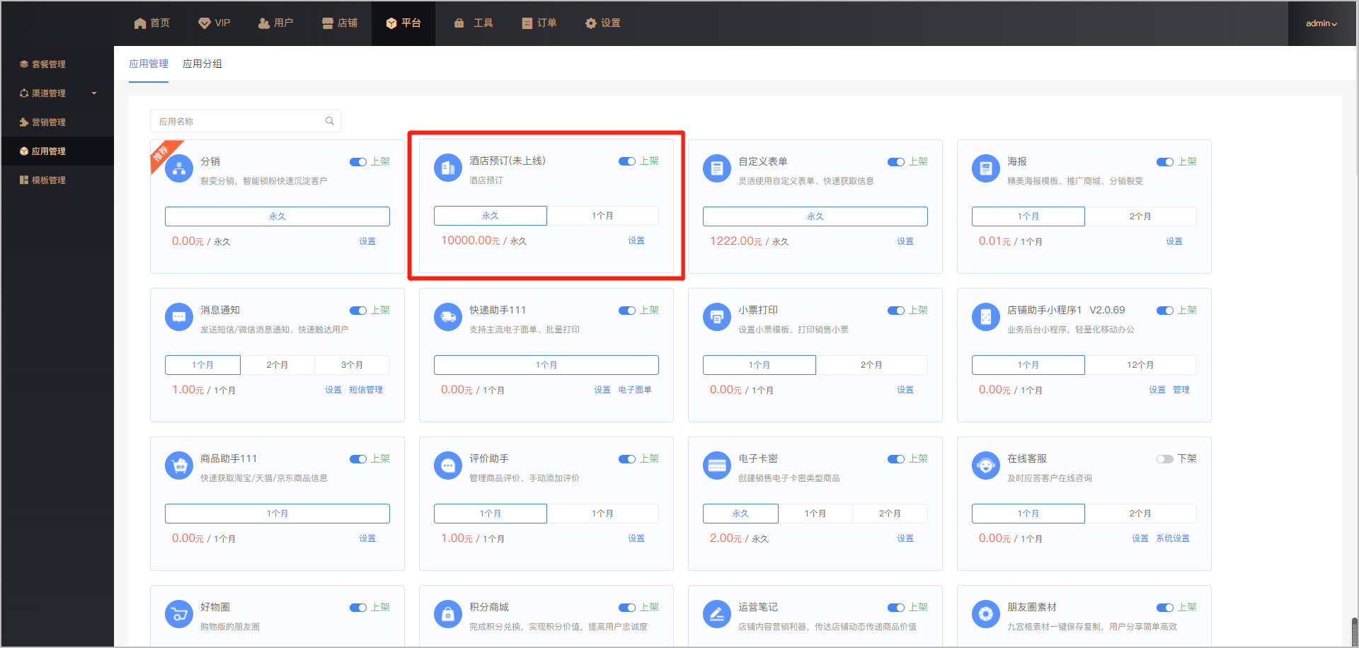 路径:管理端-平台-应用管理-酒店预订