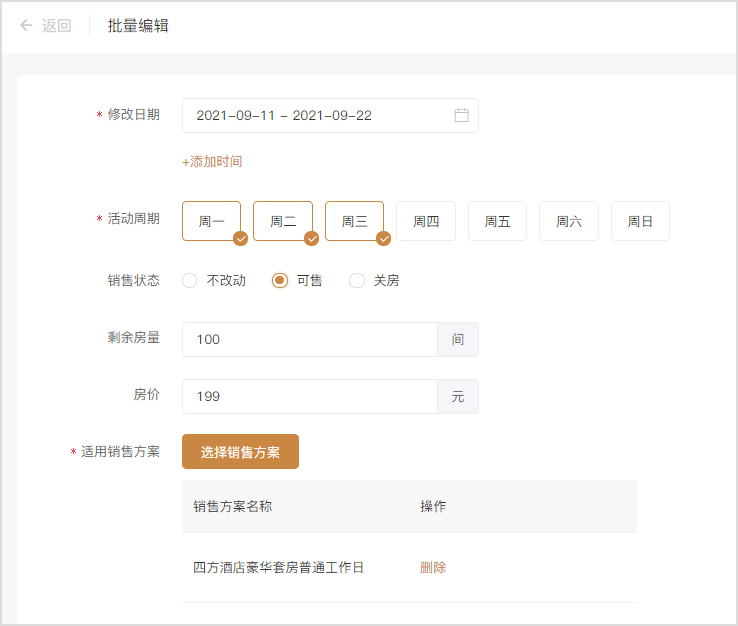 路径:业务端-应用-酒店预订-销售方案