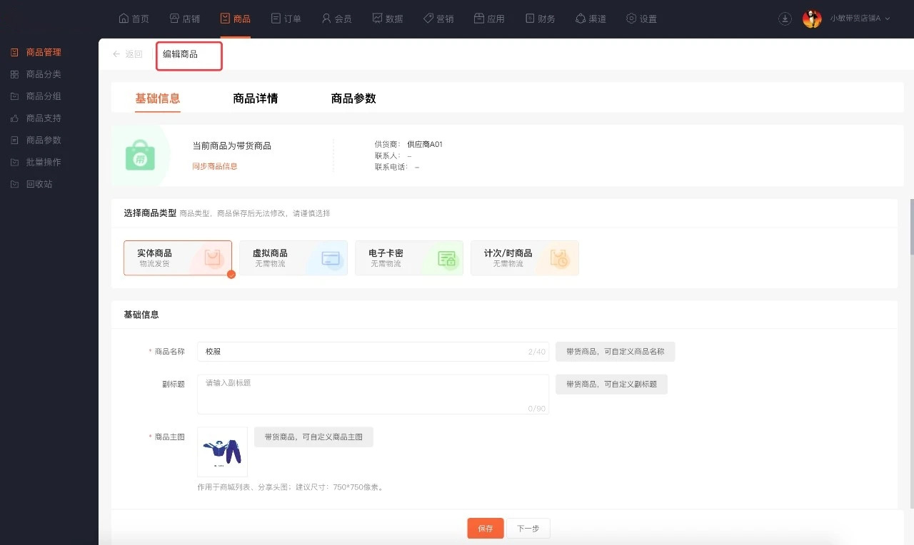 ·并且支持重新编辑带货商品的商品名称、图片、详情等信息(调整后支持重新一件同步带货商品信息)。