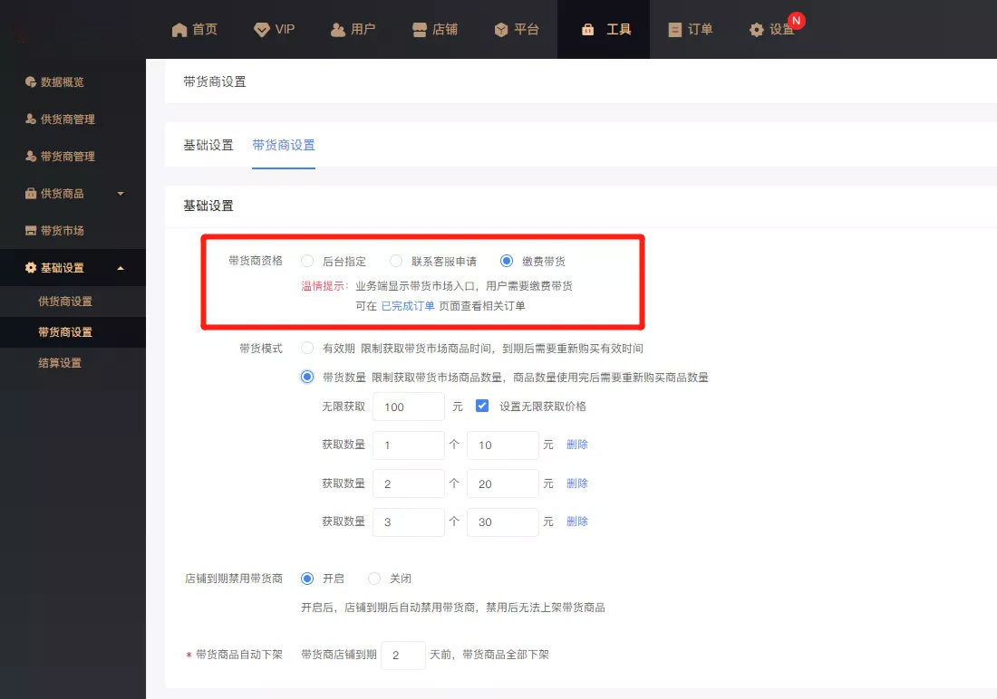 多种带货商资格设置