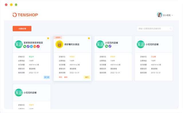 ②店铺列表优化:展示店铺绑定渠道、出售商品、会员数量等运营信息,更加直观展示店铺运营数据