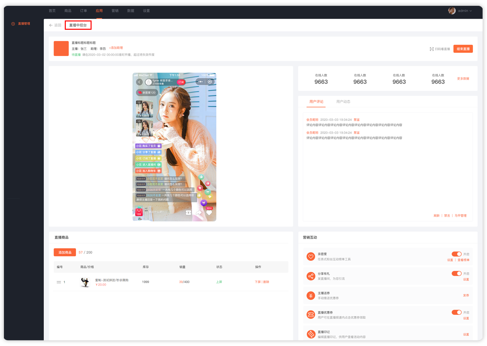 3、直播中控台