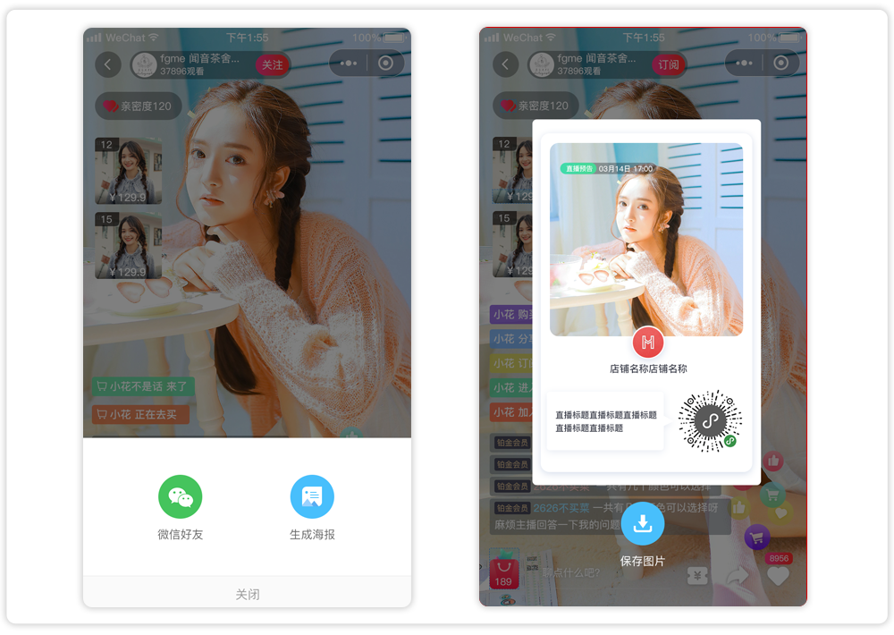 直播带货支持公众号、小程序等渠道直播;直播海报、链接一键生成,让推广更便捷高效。