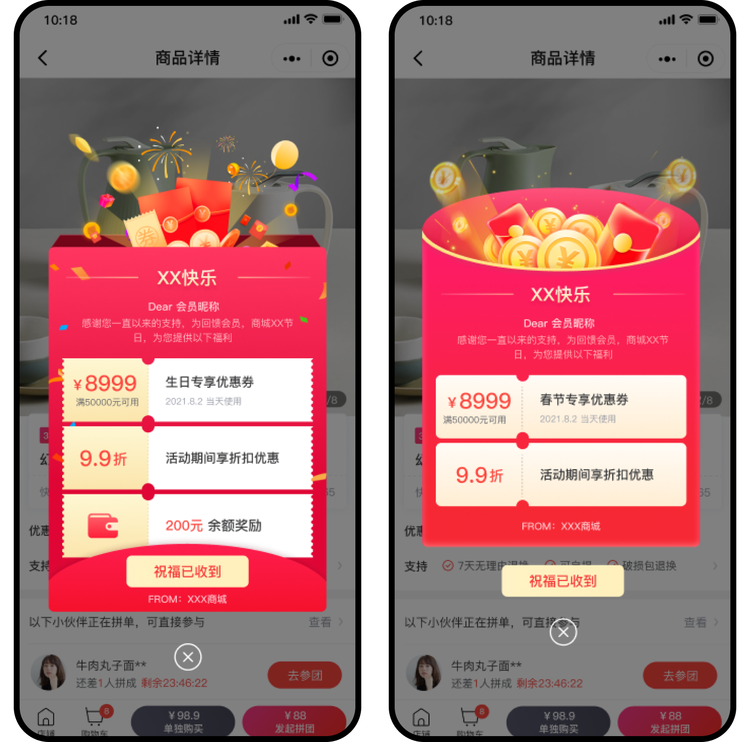 商家可自定义节日弹窗的样式和内容,强调节日仪式感,增强会员黏性。