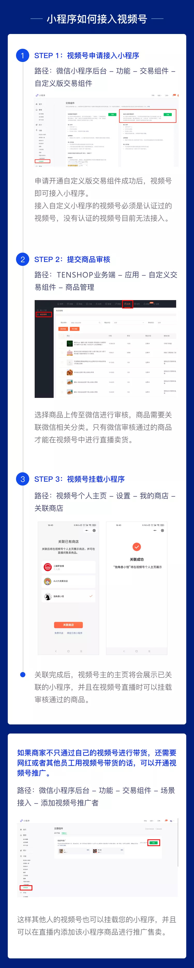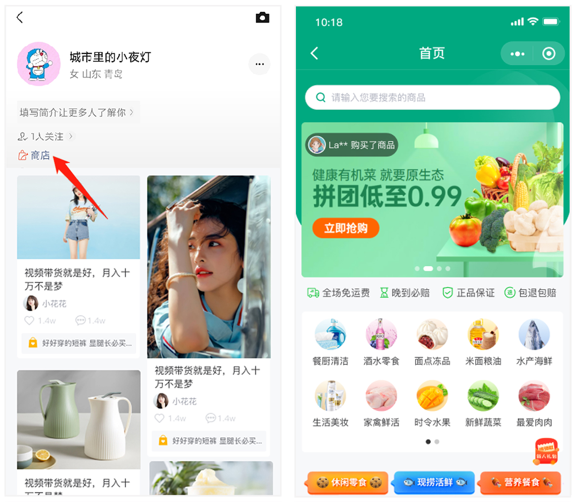申请成功后,用户即可在视频号主页或直播页面一键跳转小程序商城和带货商品,助力商家更快抢占风口流量。