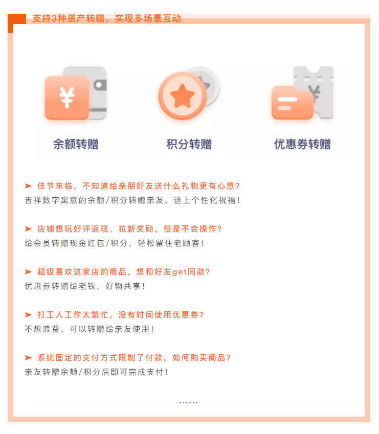 「资产转赠」正式上线!通过会员虚拟资产流转,提升会员互动和拉新。