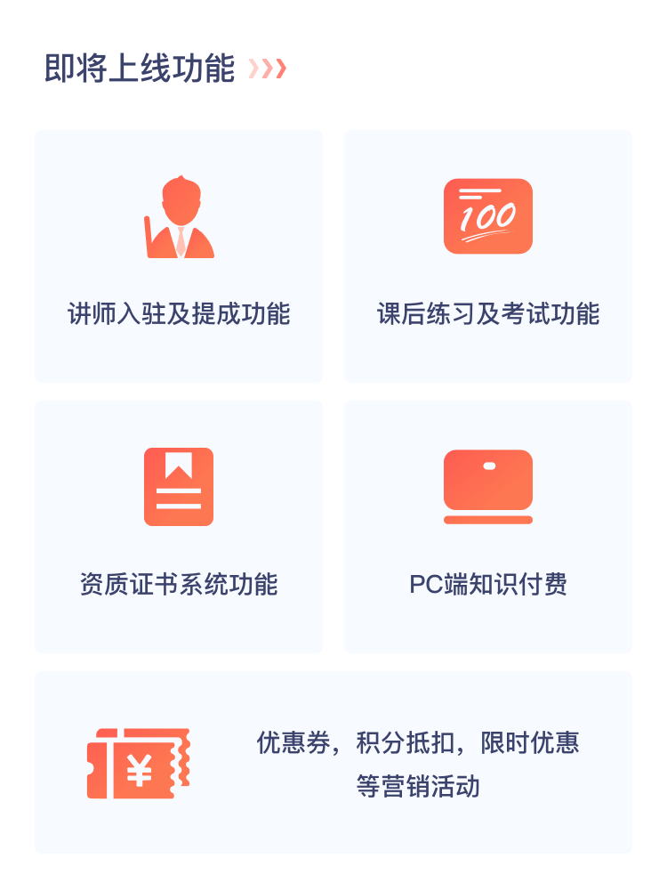 独立的课程音频和视频资源储存,防止盗链和恶意下载,目前支持七牛云存储和腾讯COS,后续将会支持阿里OSS。