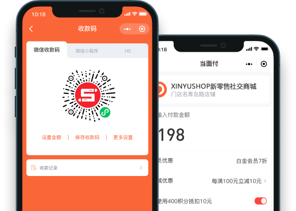 固定金额收款码:后台预先设定好一个固定金额,会员付款 时无法修改金额