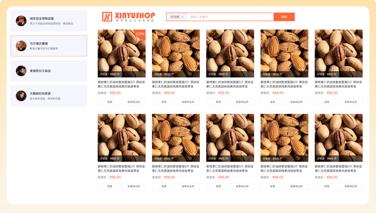 平台搭建带货市场后,可入驻和管理供货商和带货商,帮助用户解决货源和推广问题。