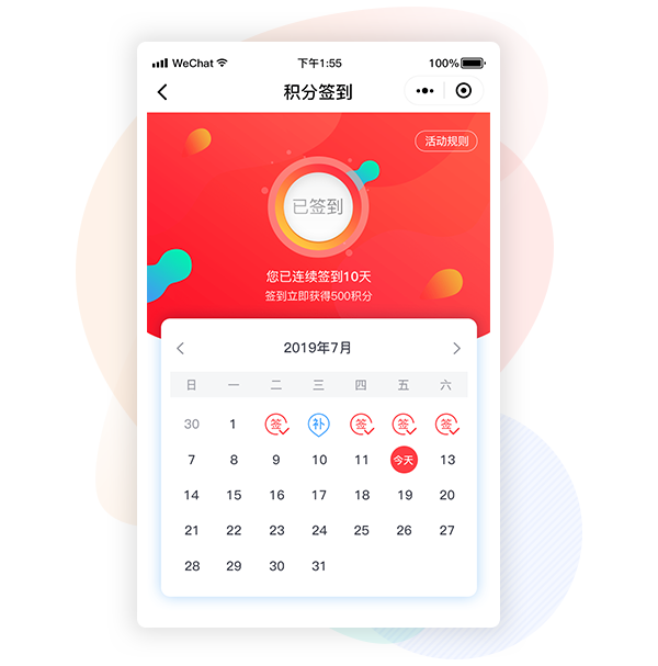 用户消耗积分可进行活动补签,增加可玩性,延展用户签到积极性。