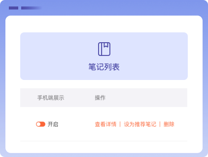 商家可手动将笔记设置为“推荐笔记”以及是否在“手机端展示”。