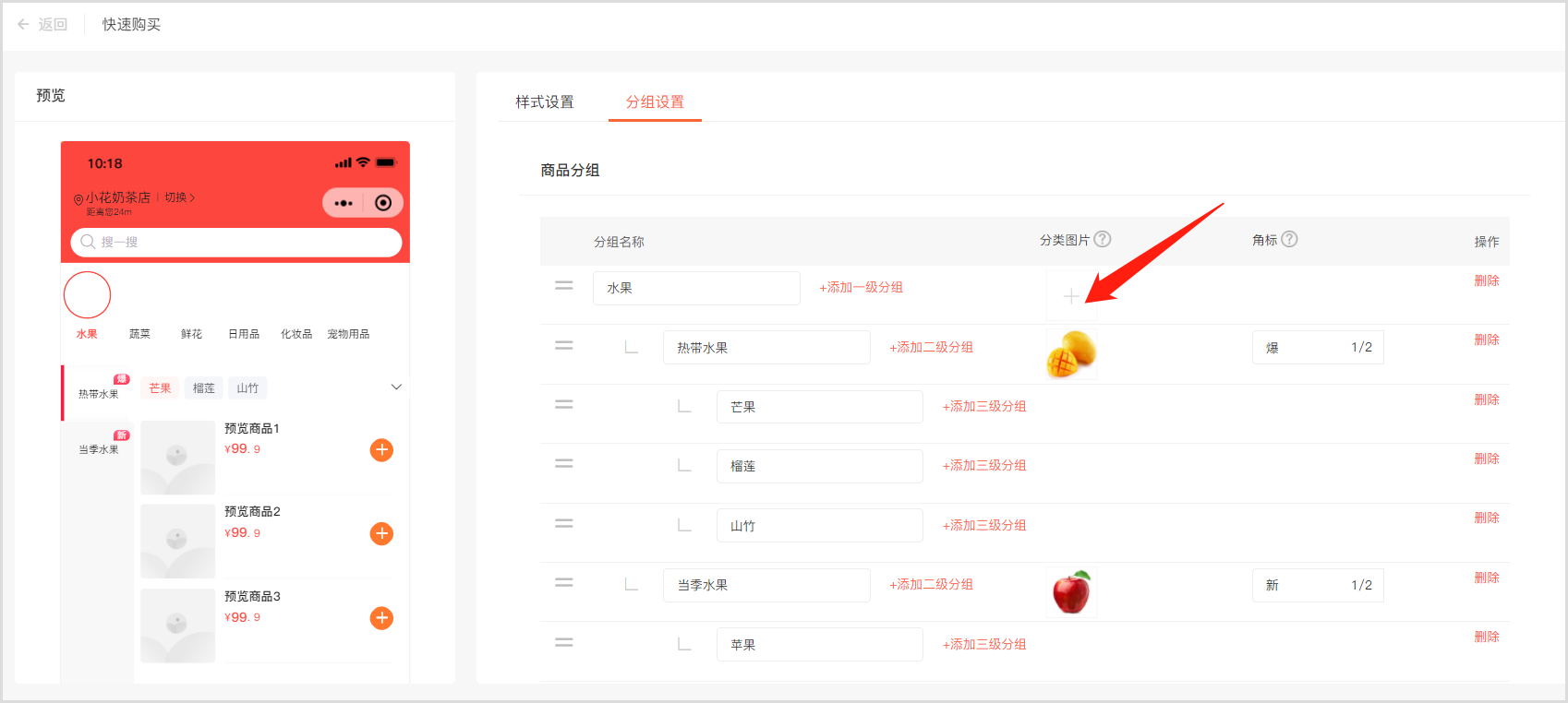 04 / 支持给一级和二级分类上传图片,图片对应分类名称,页面更加生动。