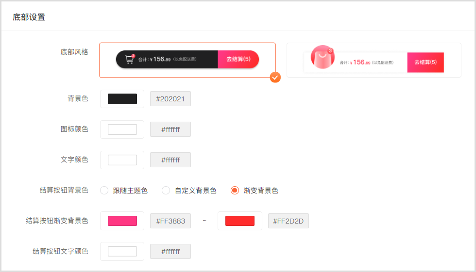 06 / 底部样式支持两种风格,可自定义背景色、按钮颜色、文字颜色等。