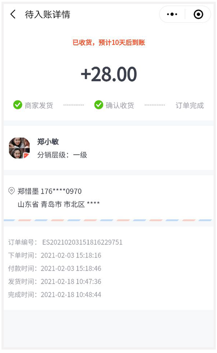 分销待入账订单详情增加显示:付款时间、发货时间、完成时间。
