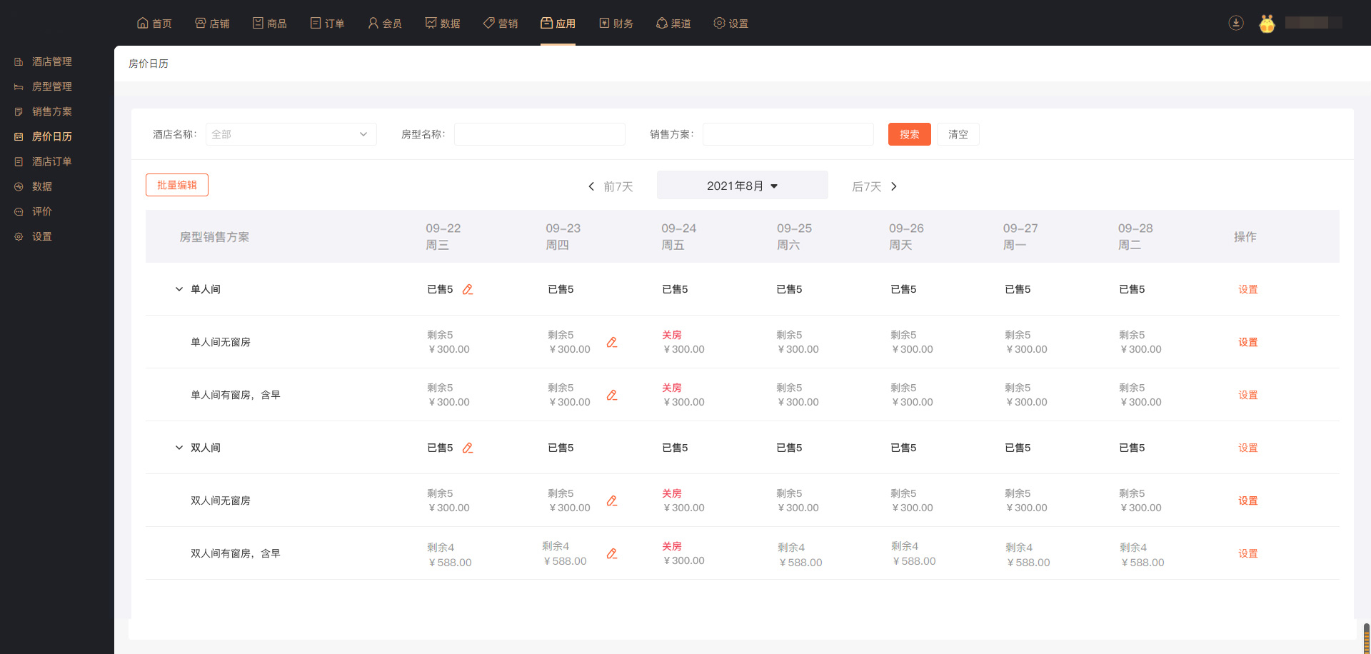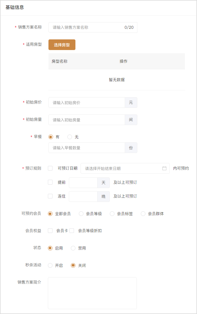 路径:业务端-应用-酒店预订-销售方案