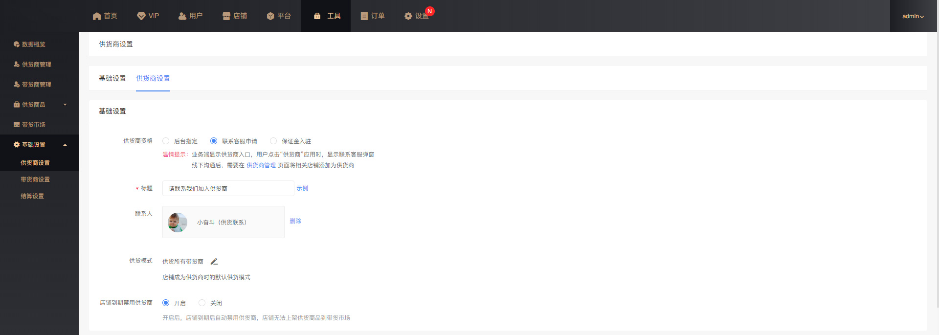 ·其中保证金入驻方式还可以开启“店铺交易额”、“店铺商品数”等成为供货商的店铺门槛。