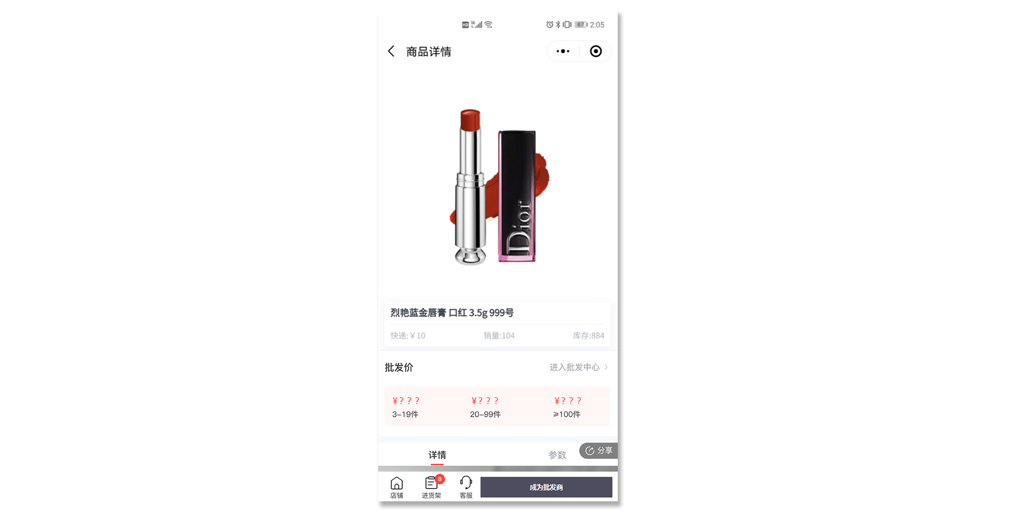 · 后台可设置是否对非批发商隐藏批发价格,并引导用户成为批发商。