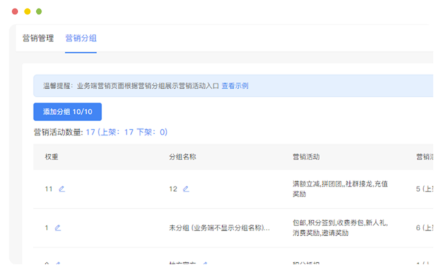 工具菜单功能目前包含“短信签名”,“优惠码”,“系统公告”,“小程序业务域名”,“平台官网”,“平台广告”,“独立存储”,“数据管理”等,后续会继续升级更多实用功能,敬请期待!