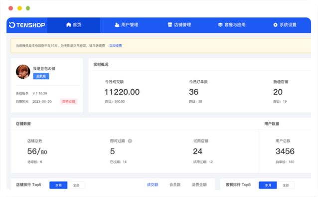 ②店铺列表优化:展示店铺绑定渠道、出售商品、会员数量等运营信息,更加直观展示店铺运营数据
