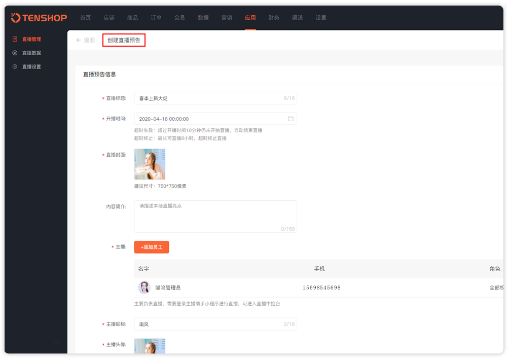 2、创建直播预告