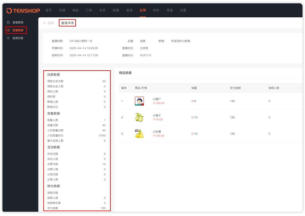 4、直播数据实时查看