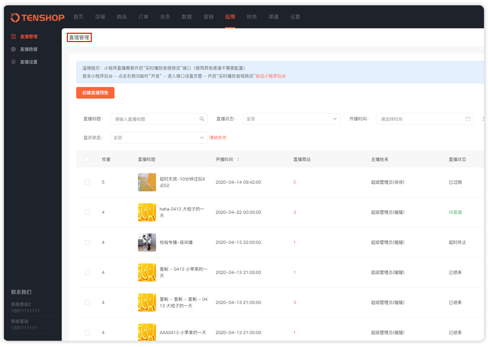 1、直播管理
