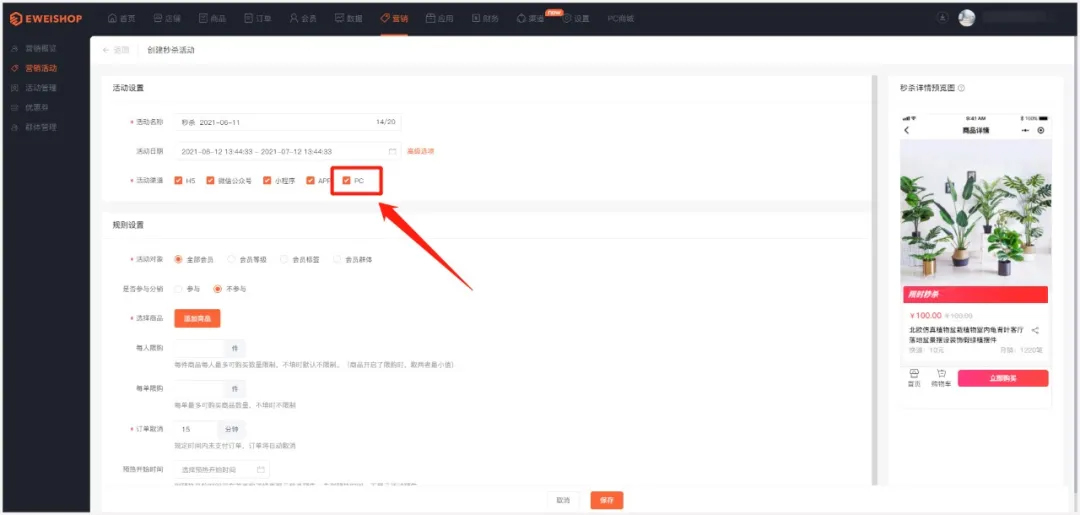 支持多种营销活动