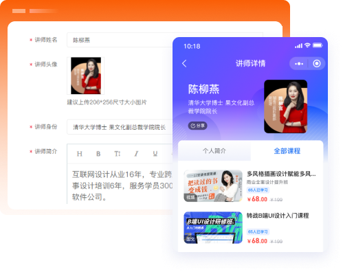 设立讲师专栏和讲师详情页面,树立讲师形象,便于用户付费学习同一讲师课程,增强用户粘性。