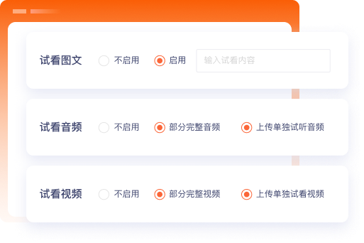 所有类型课程都支持开启试看,可上传部分课程内容作为试看来吸引会员购买完整课程。