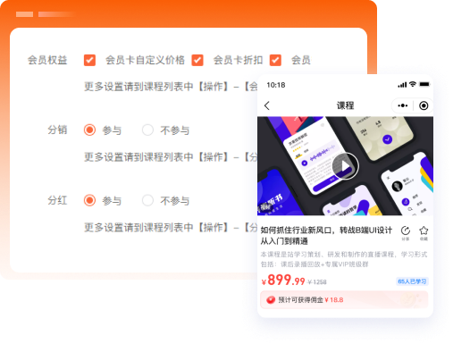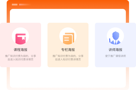 支持自定义课程海报样式,可通过用户分享传播将课程信息快速触达并吸引到更多用户。