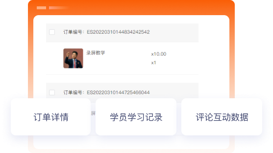 订单详情、订单状态、会员学习记录、评论互动等数据一目了然,便于精准制定运营方案。