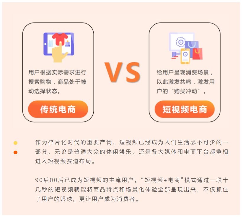 短视频为商品和用户搭建了高效的沟通桥梁,对内容变现及电商流量获取都起到了重要的推动作用,已成为社交电商营销爆款制造器!