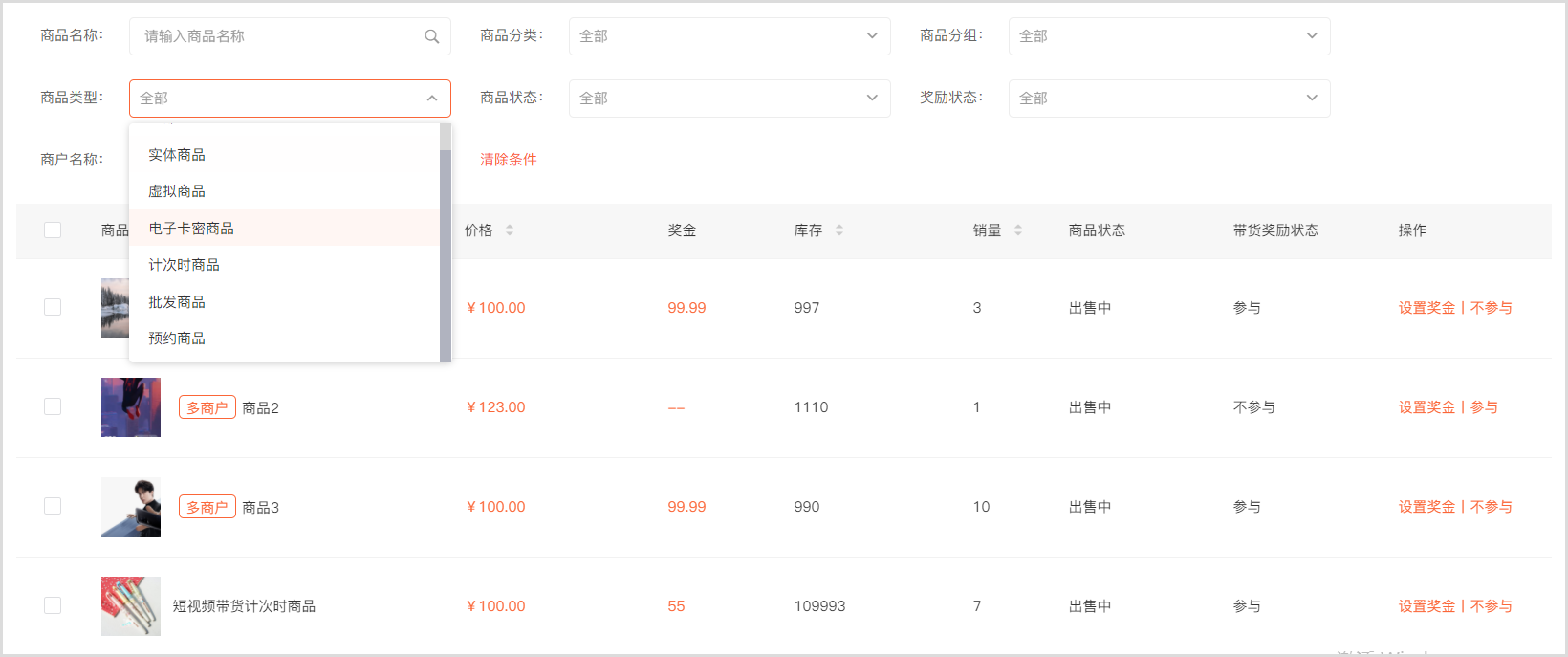 03 // 支持给不同的商品设置不同比例的带货奖金,且可根据发布者等级进行差异化设置,激励用户升级。