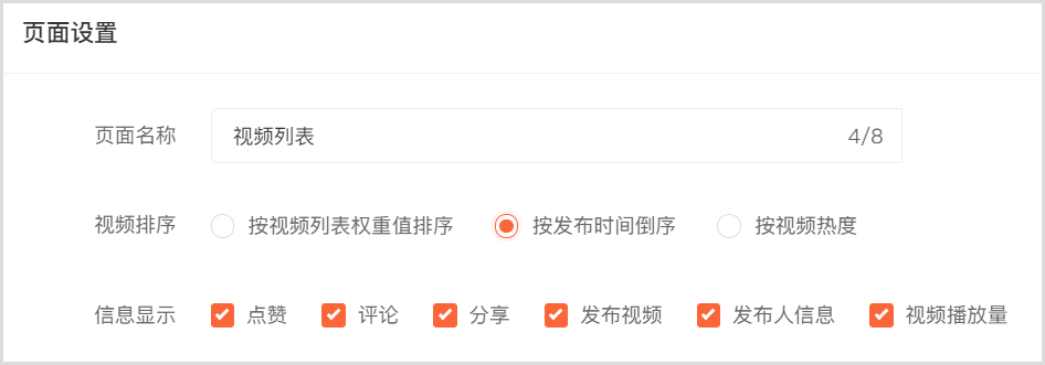 05 // 视频可设置为根据视频权重值、发布时间倒序、视频热度三个维度的数据进行系统排序展示。