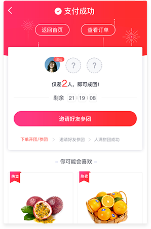 星娱商城XINYUSHOP拼团系统可一键分享邀请海量好友参与团购,可快速引流降低库存积压。