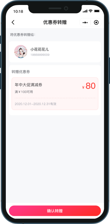 将自己心仪店铺的优惠券转赠亲友