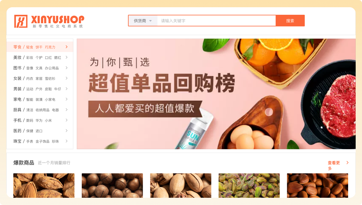 平台搭建带货市场后,可入驻和管理供货商和带货商,帮助用户解决货源和推广问题。