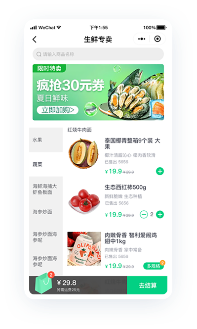 虚拟商品、电子卡密、秒杀等商品可实现一键加购。