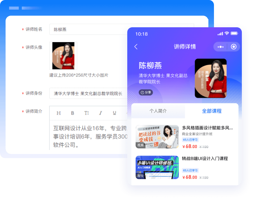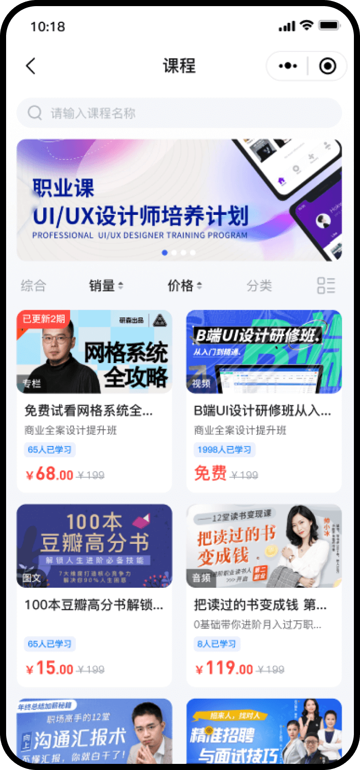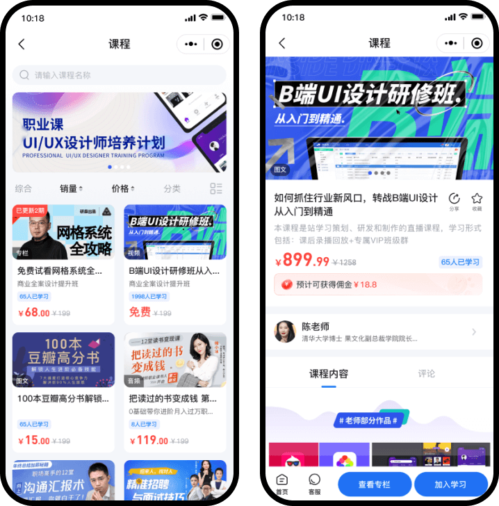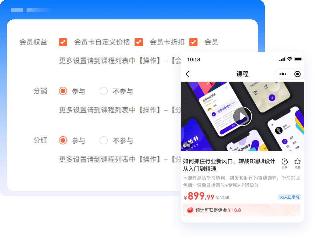 快速打造知识店铺,实现内容变现,满足用户碎片化学习需求,多维度沉淀粉丝,提升用户粘性。