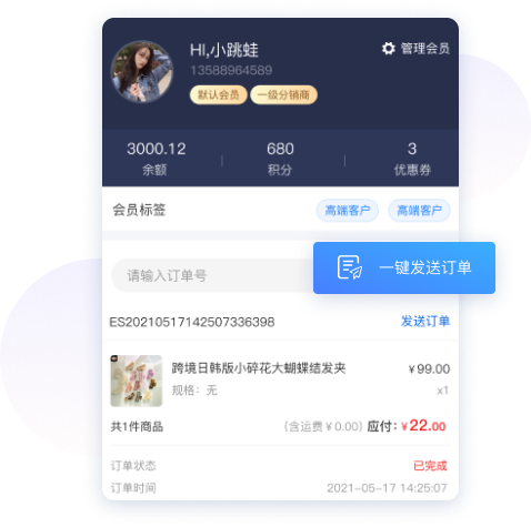 星娱商城XINYUSHOP与云起链客SCRM深度结合,会员信息和订单数据全面打通,高效运营私域流量,提升会员转化与复购。